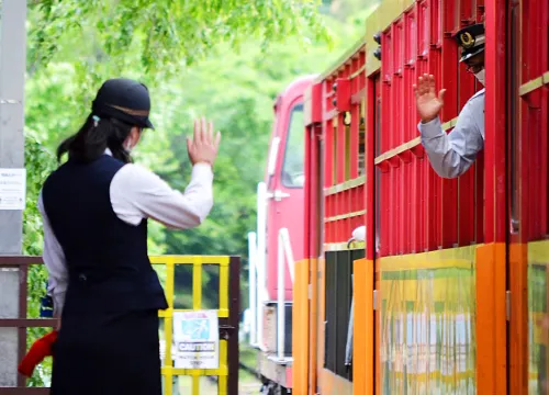 호즈강의 절경과 사계절의 풍경을 즐길 수 있는 사가노 토롯코 열차, 멋진 경치와 운전사등 직원들의 친절함. 호즈쿄의 계곡을 바라보며, 상쾌한 열차 여행을 즐겨 주십시오.