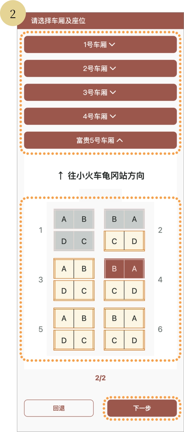 2. 选择车辆後会出现座位表,请从座位表选择座位。